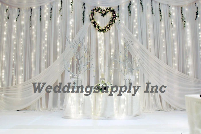 BEST SELLER White wedding backdrop with swag Heart Flower Ring and Fairy LED curtain